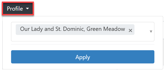 You can search for a specific user by typing their christian and/or surname in the 'Filter by name' box. However, if you wanted to filter the list and find users associated with a specific profile or group of profiles, you can do so by selecting the profile button (#2 in the screenshot above) and selecting the name of the profile(s) then click on 'Apply' as shown below: