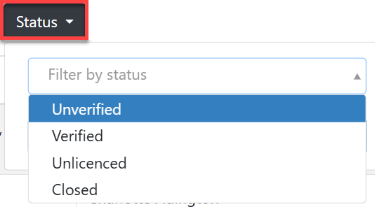 To search for users with a specific status, click on the status button (#4 in the screenshot at the top of this guide) and choose the status from the dropdown list, as shown below.