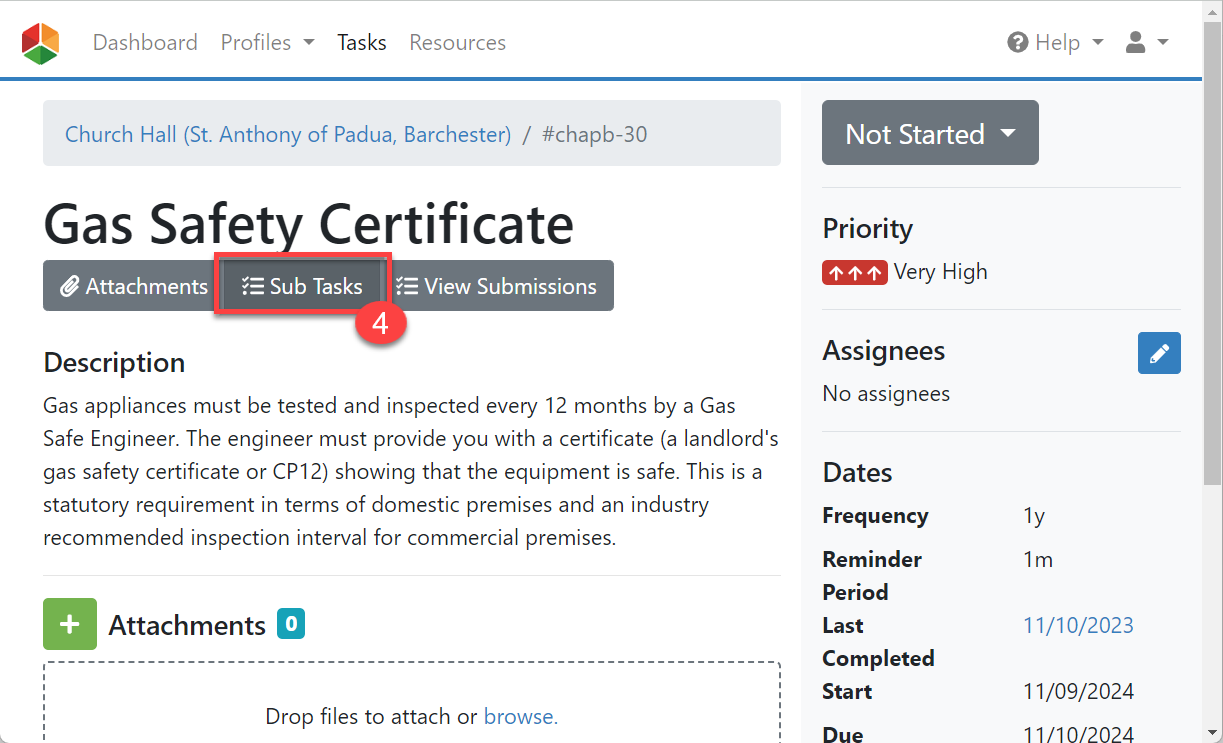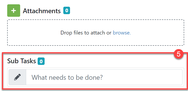 3. The 'Sub-Tasks' panel will appear below 'Attachments', (#5 in the screenshot below).