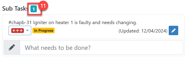 7. You can see how many sub-tasks you have in the small blue box to the right of 'Sub-Tasks' (#11 in the screenshot below).