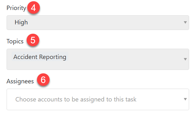 Topics (#5) - Task templates can be assigned to specific topics. This improves filtering tasks when searching task lists. Click on the drop down arrow in the Topics box and click on the topic or topics that you want to assign to the task.