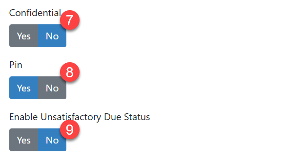 Confidential (#7) - If you choose to make your task 'Confidential', only administrators will be able to view them. If you click on 'No', all your users will be able to view them. Marking tasks as confidential is usually needed where the task relates to information of a personal or sensitive nature e.g. HR information.