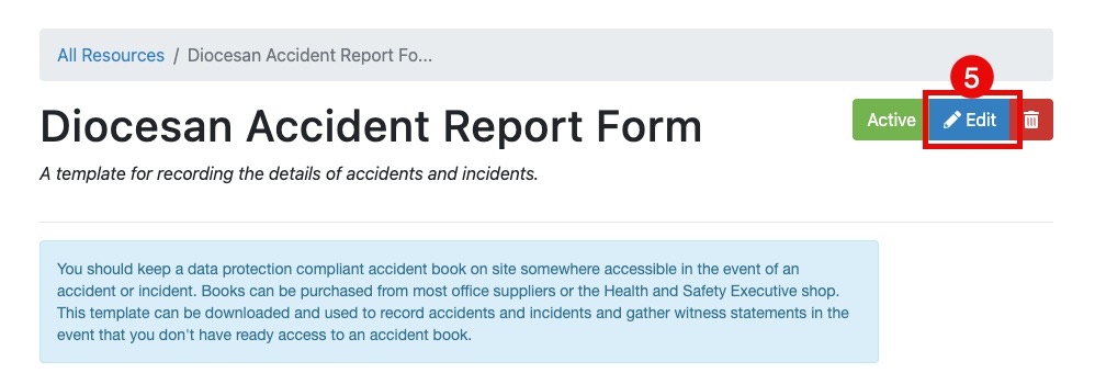 Click on 'Edit' (#5 in the screenshot below) to edit your Resource: