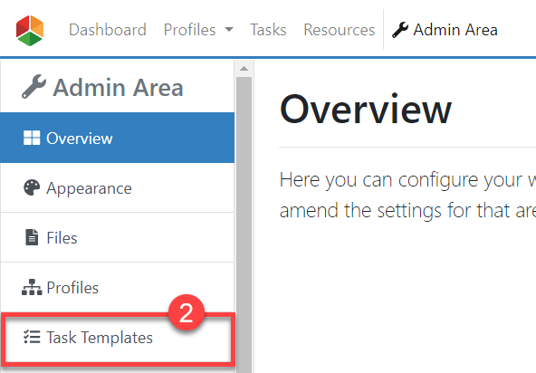 2. Select 'Task Templates' from the left-hand side panel (#2 in the screenshot below).