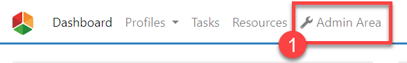 1. Select 'Admin Area' from the main navigation bar (#1 in the screenshot below).