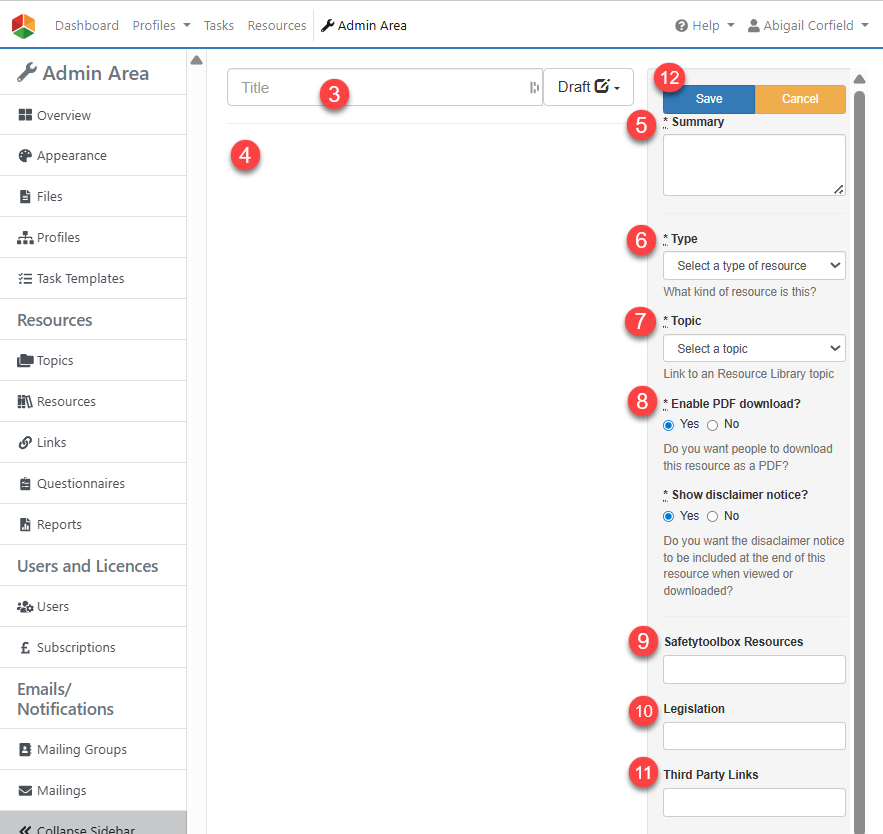 Add any relevant links to other websites. As with SafetyToolbox Resources these will be linked to in the sidebar. Please refer to our Help Guides 'Create and Manage Links within your Resources' and 'Add/Remove Links To/From Resources' for guidance.
